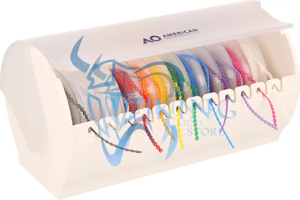 - مواد من الدرجة الطبية: تم تصنيع سلاسل الألوان باستخدام مادة البولي يوريثين الطبية ذات الألوان الثابتة لضمان المتانة والوظيفة المحسنة والحفاظ على اللون. باستخدام هذه المواد الاستثنائية، تنتج شركة تقويم الأسنان الأمريكية سلاسل تحافظ على اللون لفترة أطول ومقاومة للبقع.