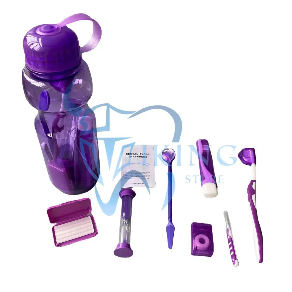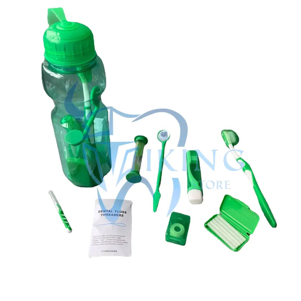 Every bag have 8 items: orthodontic toothbrush with cap, travel orthodontic brush, dental mirror, sad time(3 minutes), dental wax,