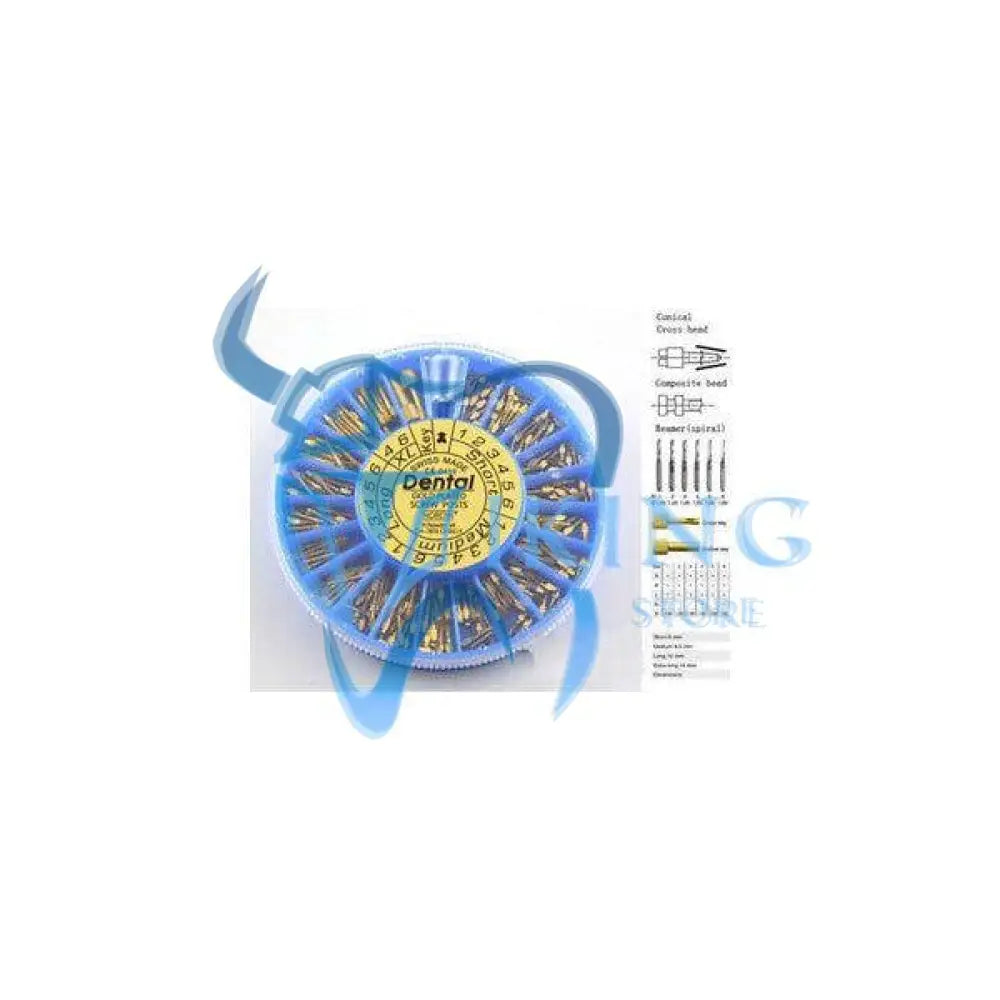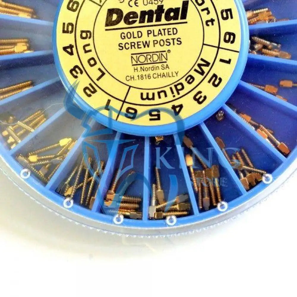High quality precision finish in a special lead free alloy, conical shaped. Thread made similar to that of a modern self-tapping screw. Gold plated screw posts electrolytically plated with a thick layer of 24 K gold.
