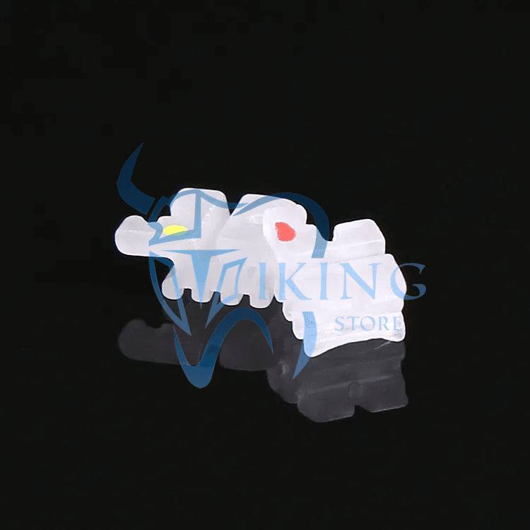 CIM process means no cutting; therefore, no microfissures to weaken the bracket. for smooth, rounded edges, maximizing patient comfort. decreases bracket slot friction during sliding mechanics.The 99.9% pure polycrystalline material used to manufacture it utilizes the smallest particle size available for maximum material density which greatly increases bracket strength.