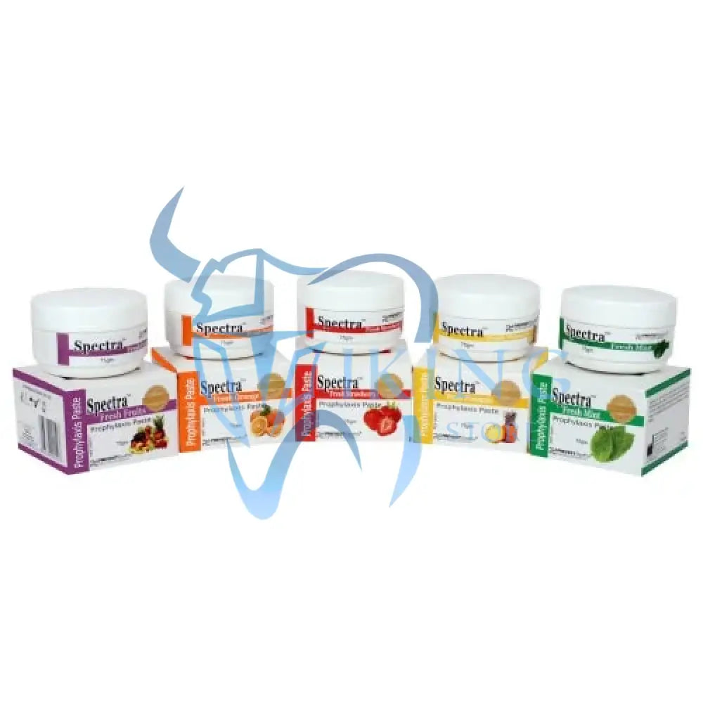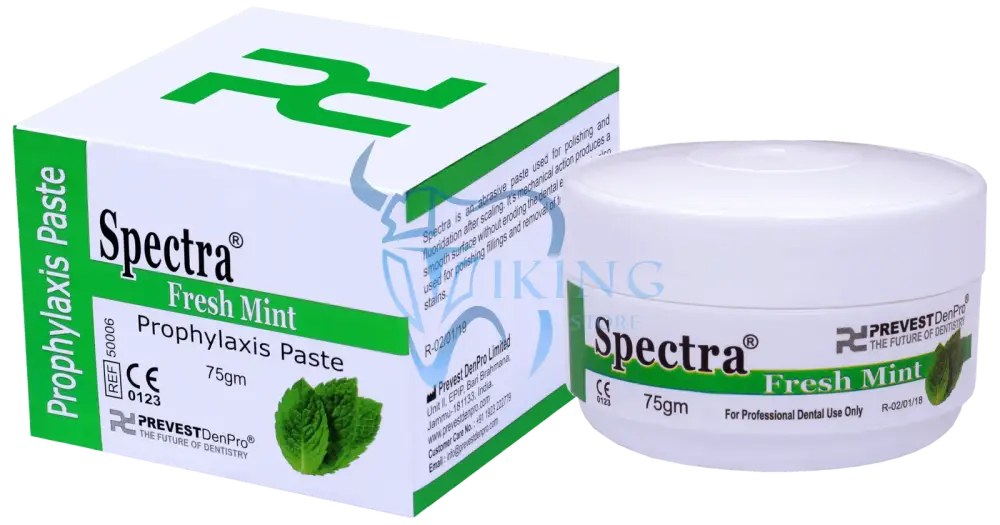 Spectra is an abrasive paste used for polishing and fluoridation after scaling. Its mechanical action produces a smooth surface without eroding the dental enamel. It is also used for polishing fillings and removal of tobacco & food stains. Spectra Minty is mint flavored that produces a fresh, pleasant tingling sensation and relieves the irritation caused by the mechanical action of the scaling.
